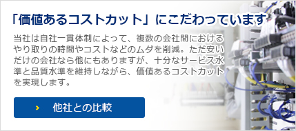 通常、PLC・シーケンサーのソフト制作、ハード製作、盤製作は工程ごとに別々の会社が行います。しかしトップツーシステムでは、自社ですべてのフローを完結できる一貫生産体制を独自に構築しました。中間マージンが発生しないため、料金はメーカーの3分の1程度、他の大手企業の4分の3以下に抑えることができます。「安さ」だけで勝負するのではなく、製品の品質ときめ細やかなサービスにもこだわっているからこそ、「価値あるコストカット」が実現するのです。